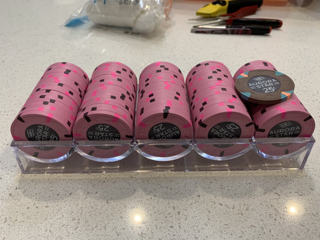 Those $2 chips would make a great nickel! Good luck on your journey! Be sure to test the NPR you use on the chips too and don't go to liberally on it. First few chips I put too much and it seems the hot pink edge spots are sensitive to it. I got the non-acetone type too, but a generic store brand so not sure if they are all created equally.