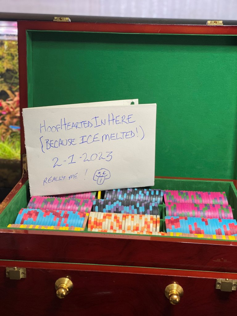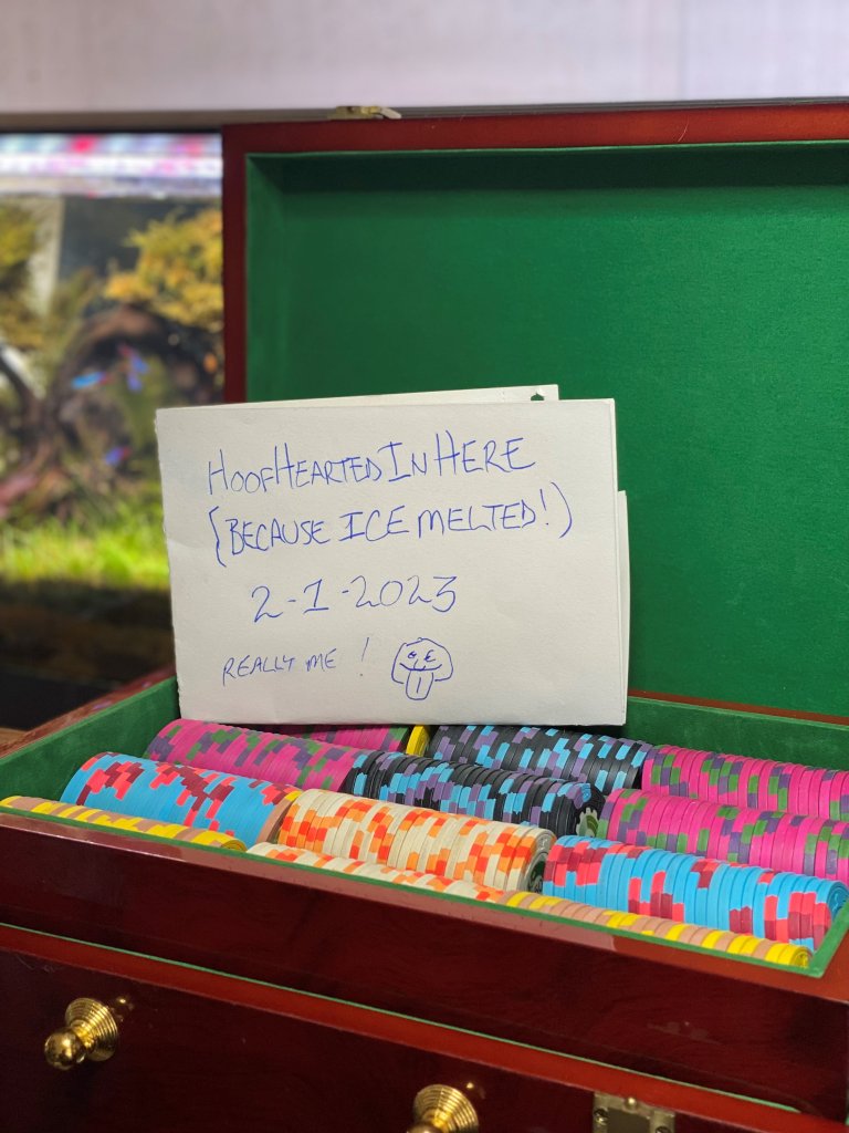 eBay at 8888.88, I'll pay the taxes and fees. But I don;t think that will happen and if not, will be putting them up for auction in the classifieds. That is where this post strted by the way, it was admin moved to the General Poker forum. I'd actually like to stick around for the reaons stated above, but you guys also seem to ne geniunely instrested in what I'm facing medically and healthwise. Some people don'[t seem to gety it, coypled with "ME ME ME" society today. In some ways, this poker forum has been like a breath of fresh air, no pun was meant!