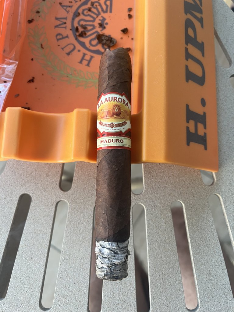 La Aurora Maduro 1986 Toro. Gift from a colleague from the DR. Solid. Chocolate. A touch sharp but great smoke, solid draw. Enjoying it.