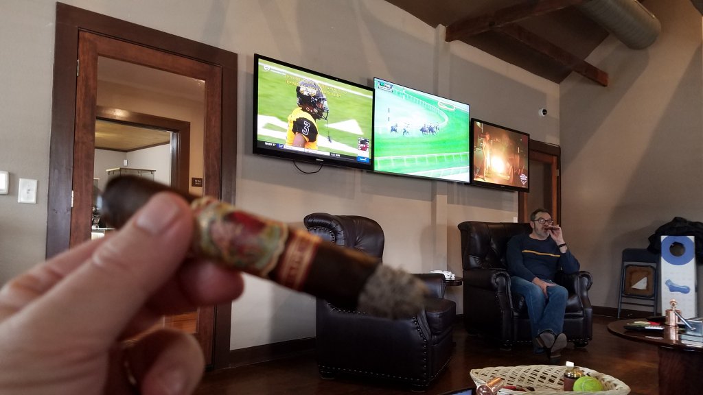 Flor de las Antillas maduro after a hardy lunch. at Apex cigar Lounge. where's the poker game?
