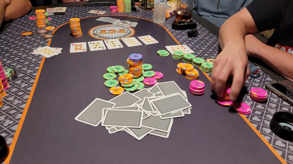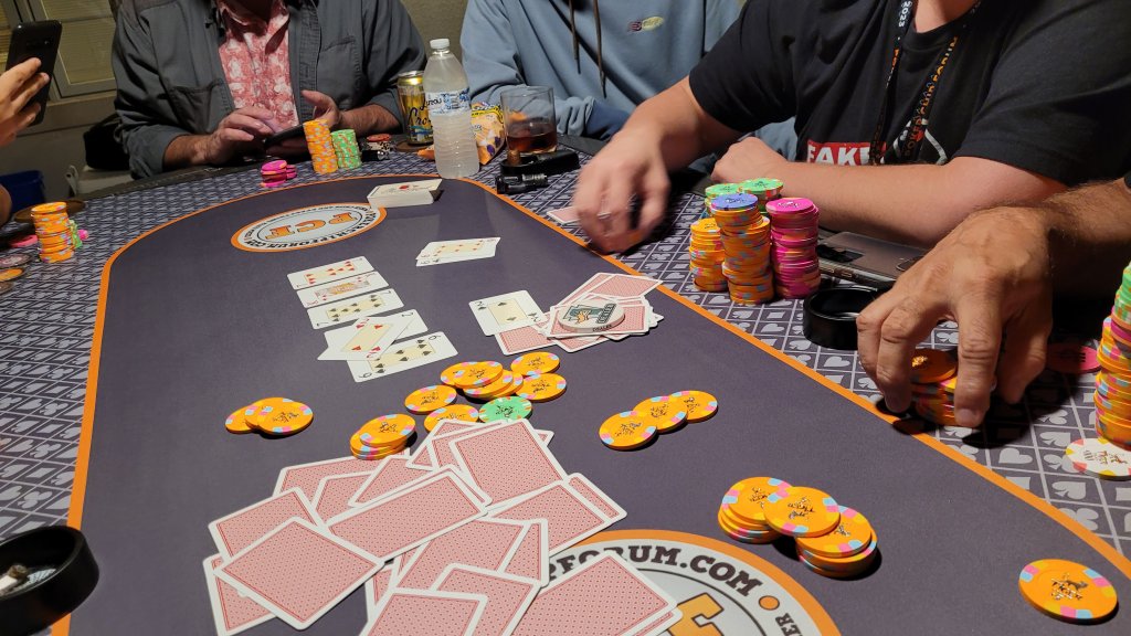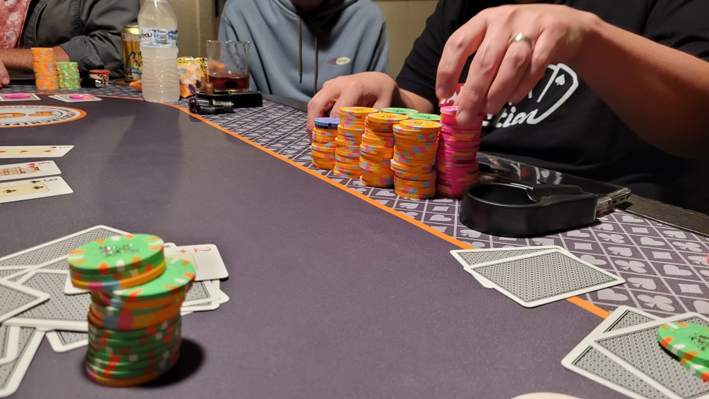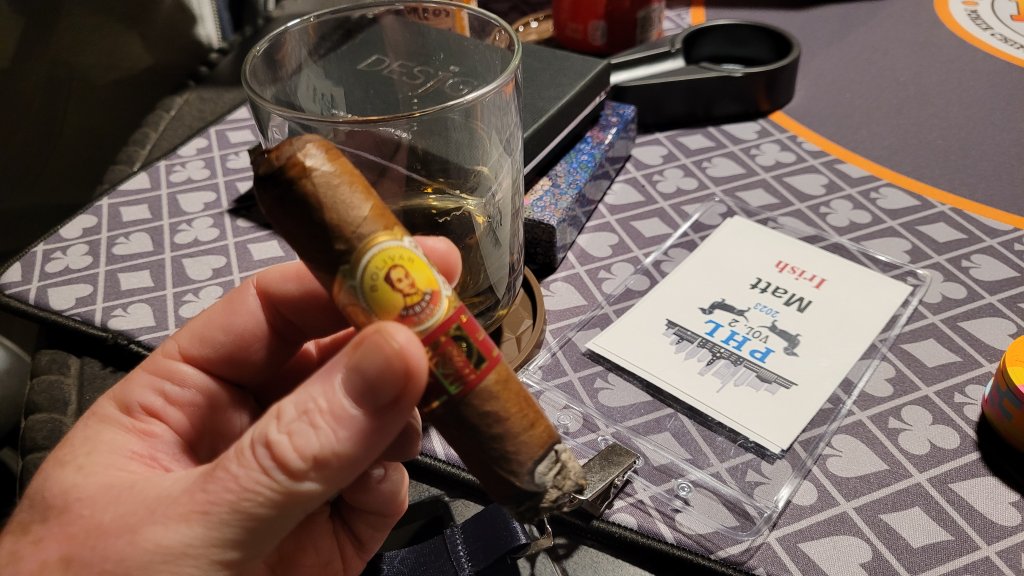 Curious— ashtrays. Our felt is a table topper outside, but everyone smokes. I’ve got one 3-cigar ashtray, but that’s awkward in the middle. How do you all deal with lots of stogies round the table?