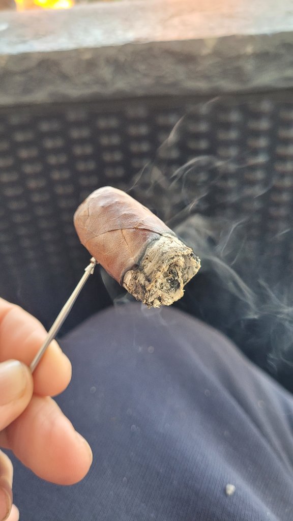 @Lil Tuna thank you again my friend, this was a great stick. I haven't smoked too many DCs but every one I've had has been a pleasure, these are so well made. Perfect draw from the start and zero corrections, relights or resnips needed, and tons and tons of rich smoke. This one started out on the darker/fuller side for Dominican stick - dark semi-sweet chocolate, toasted hazelnut, cedar, coffee and plenty of spice/pepper. The second half, the spice/strength dialed back a just a bit and got incredibly creamy, with sweet toffee and more of the toasted nut flavor coming through, with just a hint of the floral notes I get in their flagship blend. Subtle and crazy well balanced. And thankfully I was able to get my draw tool out for nubbing without impailing myself lol. Great cigar for a chill, relaxing afternoon.