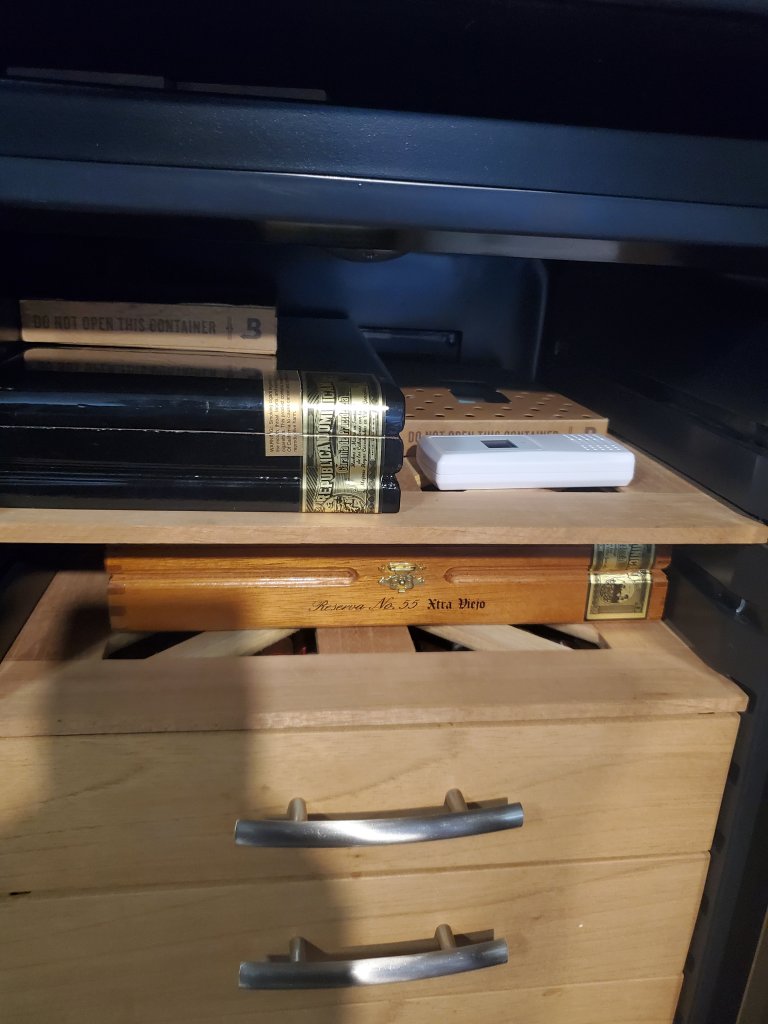 Not on a tupperdor, on a humidor, and not really glue, but some kind of clear sealant, I forget what I used exactly. It's a glass top, and I was concerned about the glass not being properly sealed against the wood. Make sure to let it off gas for a long time before putting sticks back in of course!