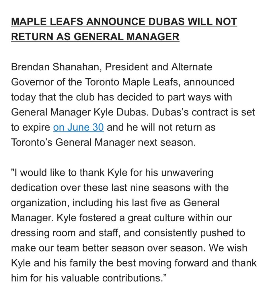 The other thing to consider is who else is looking to make changes. I can see Chicago looking to make a splash and going for a quick turnaround in winning the Bedard sweepstakes. Lots of other teams that would look to make changes however are either lacking cap space or have NMC's up the wazoo so that even if they wanted to make changes, they can't (NYR). The list of who can take on a Matthews or Marner cap hit is short.