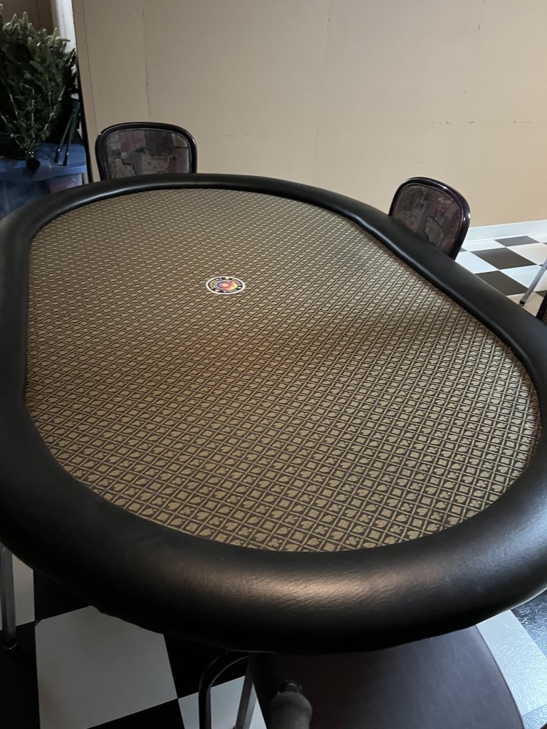 My smaller table has a rail and that’s what I use for when I have cash games with. 8 or fewer players. To be clear I have two hands but one was rendered paralyzed in a stroke I suffered 5 years ago. Here is a photo of my small table. On the hand thing it’s weird in that even though I cannot use it I still can feel everything that happens to it.