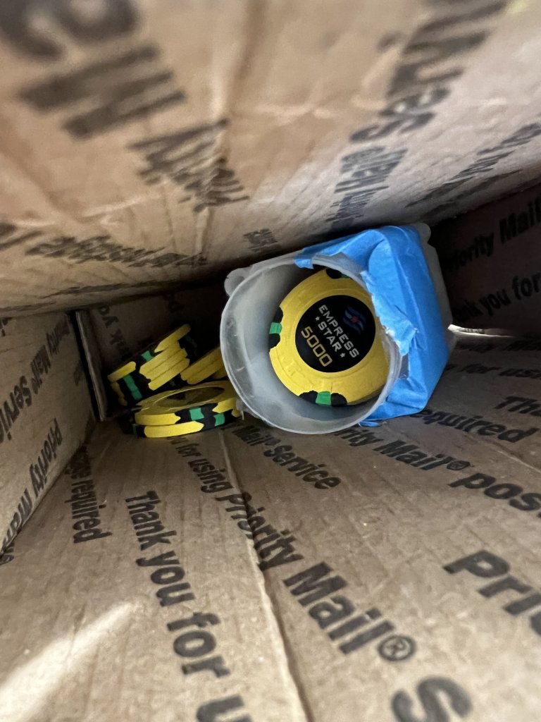This poker chip trick was on me. Granted, they're not expensive chips, but what kind of moron would put two Matsui racks into zip-lock bags, throw them into a large FRB with zero padding, and ship that way?