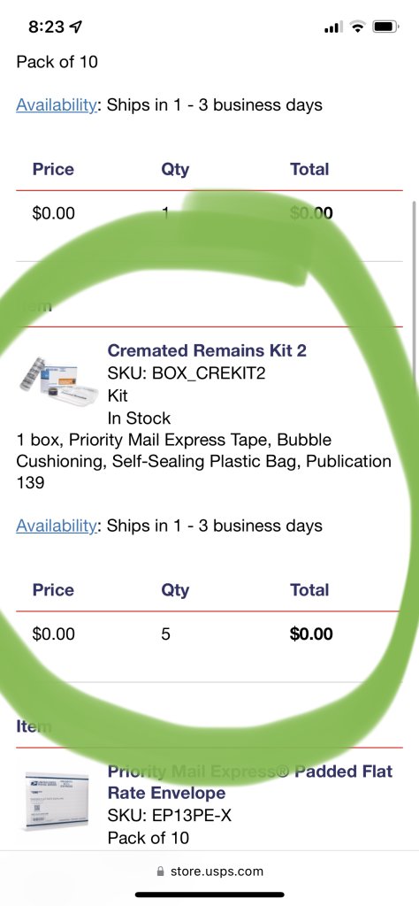 Except USPS employees who have a fetish for cremated remains. Which I’m pretty sure is 95% of all postal workers.