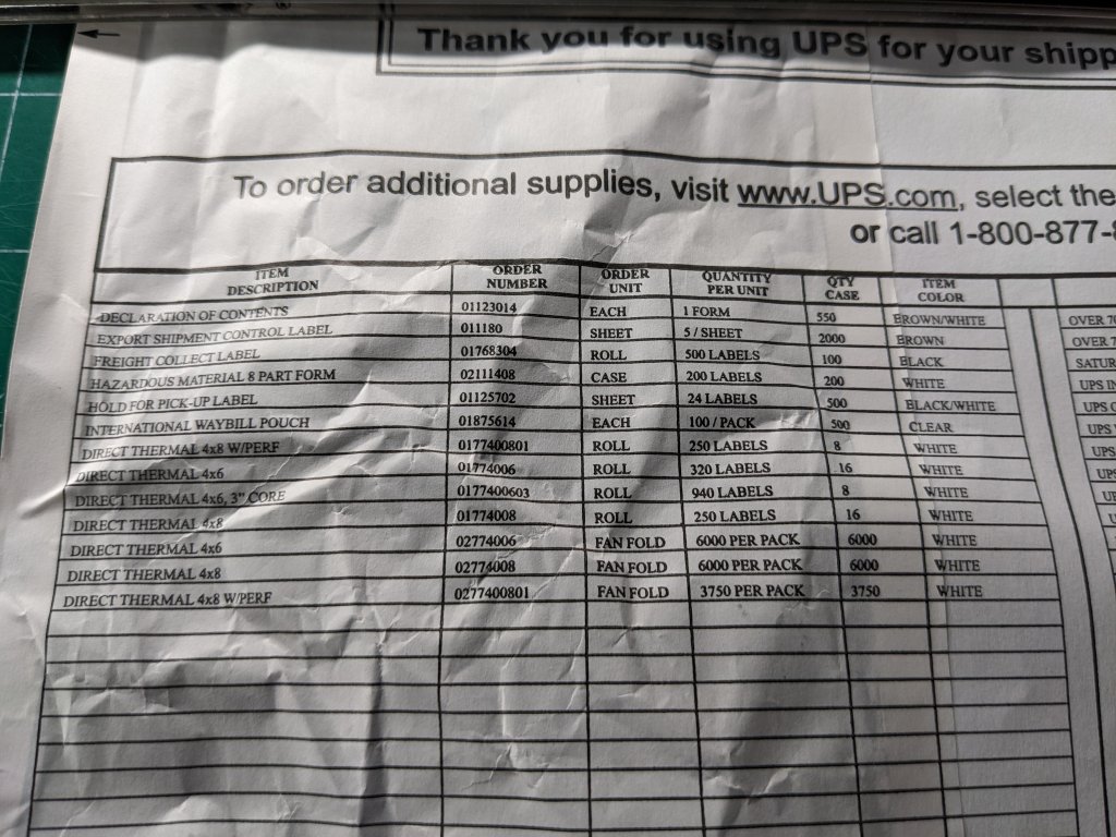 Free 4x6 labels for my Zebra thermal printer. ;) No UPS shipping account needed to order them online.