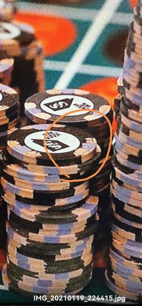 Watched a couple more clips of Maverick this morning. In these shots you can see:Here is another shot of the chips at the final table in Maverick, showing other colors and a better view of the mold and inlay. The reds are denominated "50" but the yellows are not denominated. Unclear if blue is denominated.