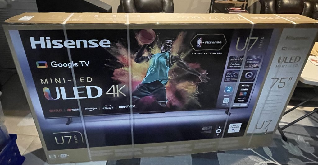 Wow going from a 65” to 75” I didn’t think it would be such a big difference but it is.My 5 year old 65” Sony TV in my home theater in the basement is having a lot of issues so it was time to upgrade to a new 75” Hisense. The TV just got delivered last night. This model has been highly rated and has a 144 refresh rate, 4 HDMI ports, and the TV menu is pretty well laid out. My brother is coming over tonight and will help me unmount the old TV and mount this Hisense.