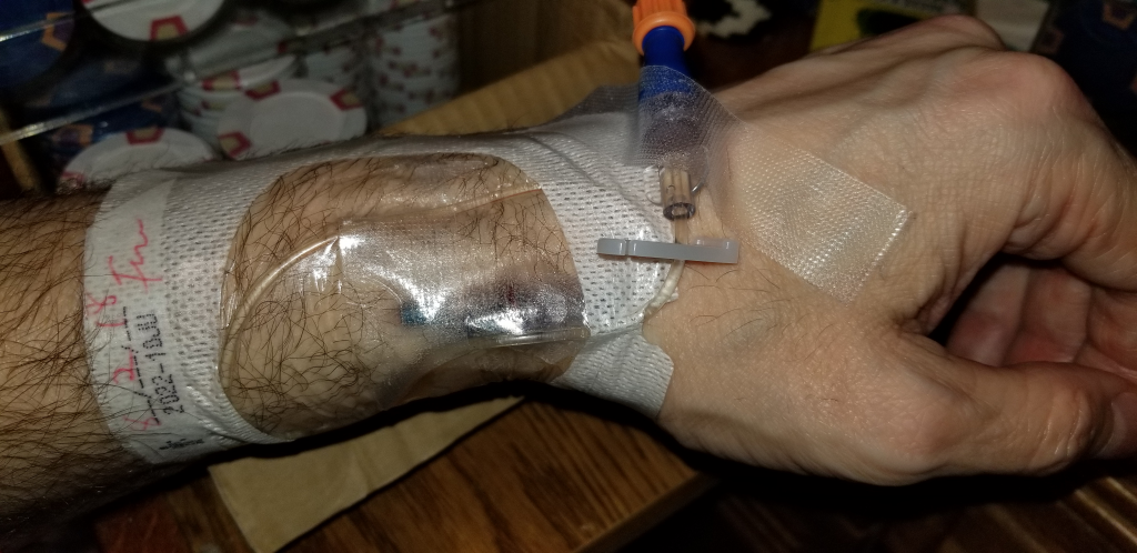 edit: GRRRR! I had an MS attack and the treatment to recover feeling in my legs and hands the neurologist proscribed three daily 1000mg IV infusion of methylprednisalone so I now have a line for the next 3 days on my hand. Pause on chip washing. :(