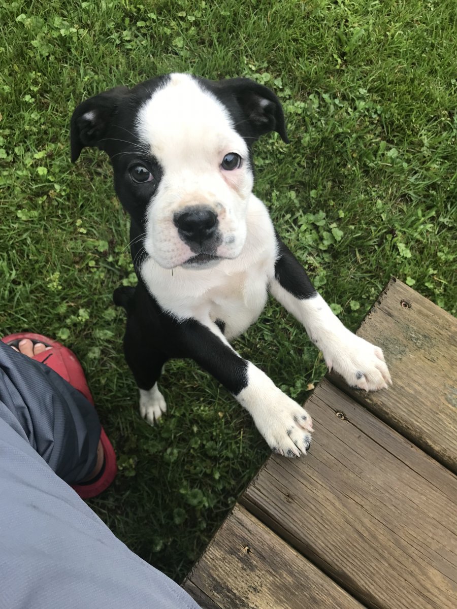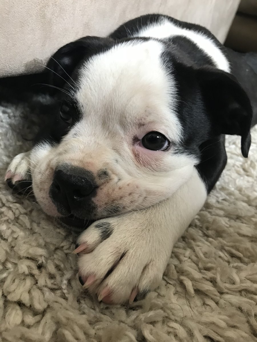 She is a cutie! Is she a Boston?Brought this little gem home yesterday. She’s 8 weeks old and has the cutest little poker face out of anybody I know. We named her Zadina, ‘Dina’ for short. #LGRW View attachment 195062View attachment 195063