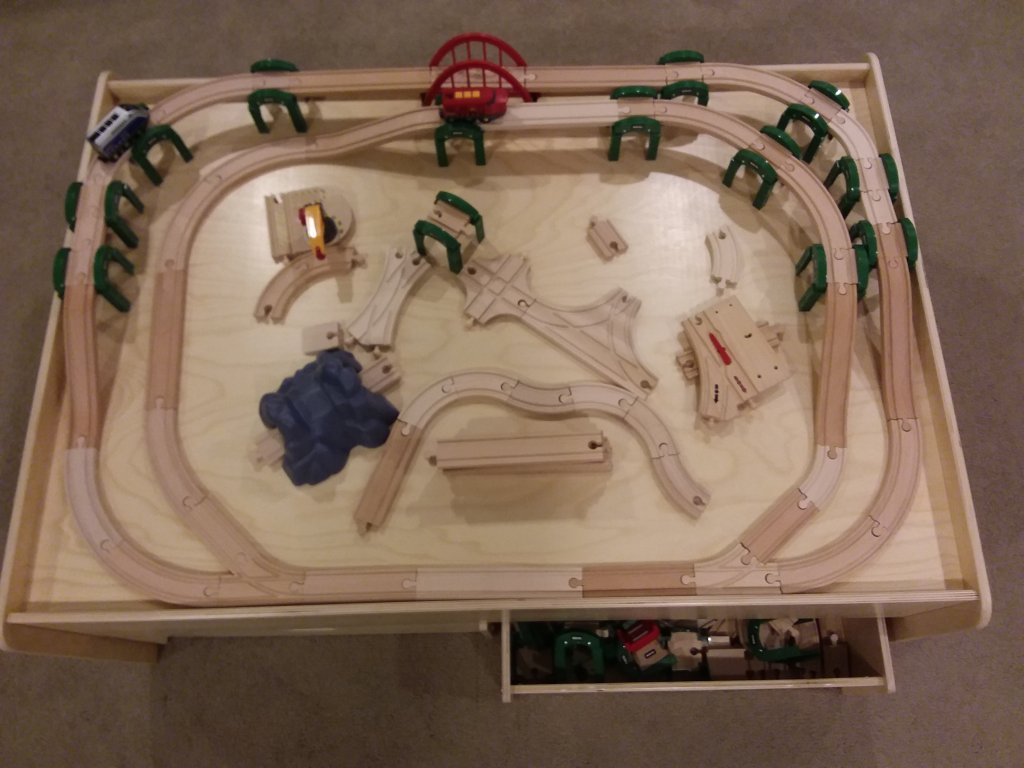 Got this table and train set for the kids. The table is made in the USA by a company in CO. Quality is top notch.