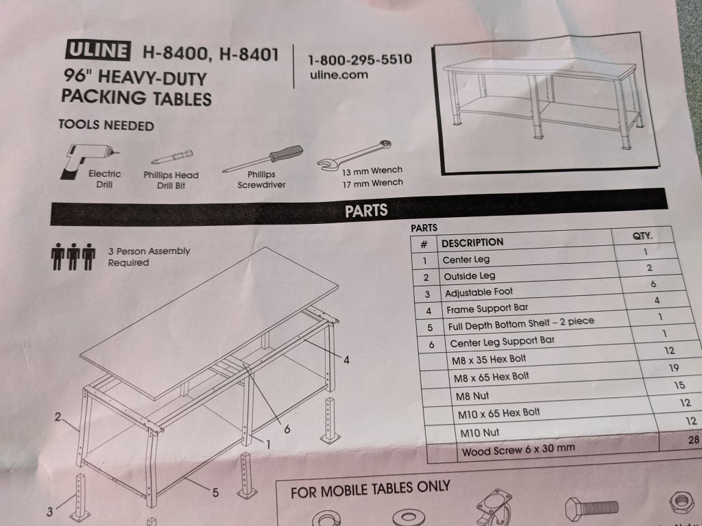 1 person assembled. lol. The hardest part was carrying the 96" x 36" maple butcher block top from the garage to the basement.