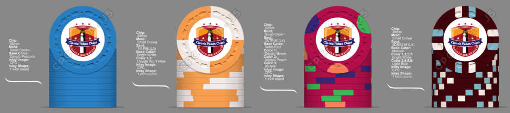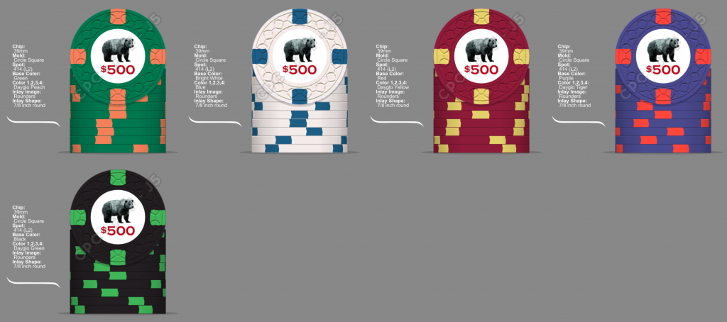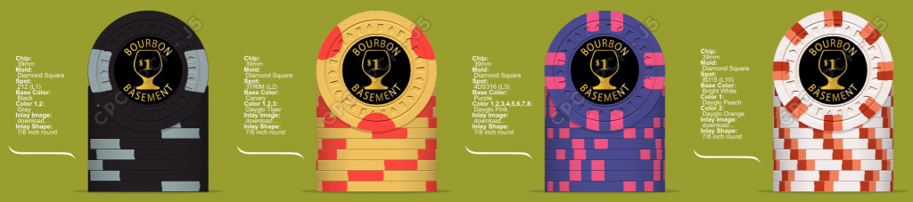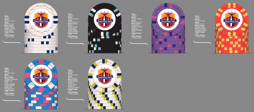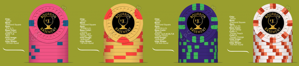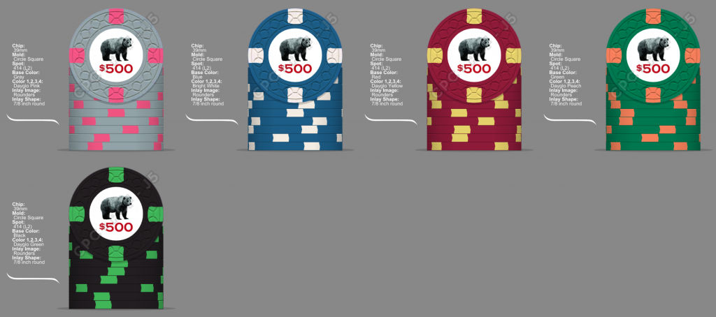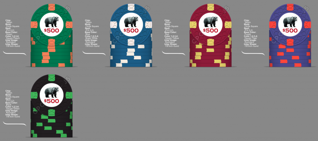 Now that I have my Custom Design being made for my first project I am now thinking about my next Custom Project. I am leaning towards doing an Atlantic City Tribute cash set for some closed casinos. Below is a Mockup of the Chips I did on the CPC site. I would have to get custom labels done for them outside of CPC. I also still would need to see which mold I would go with and work on some of the base colors and edge spots.