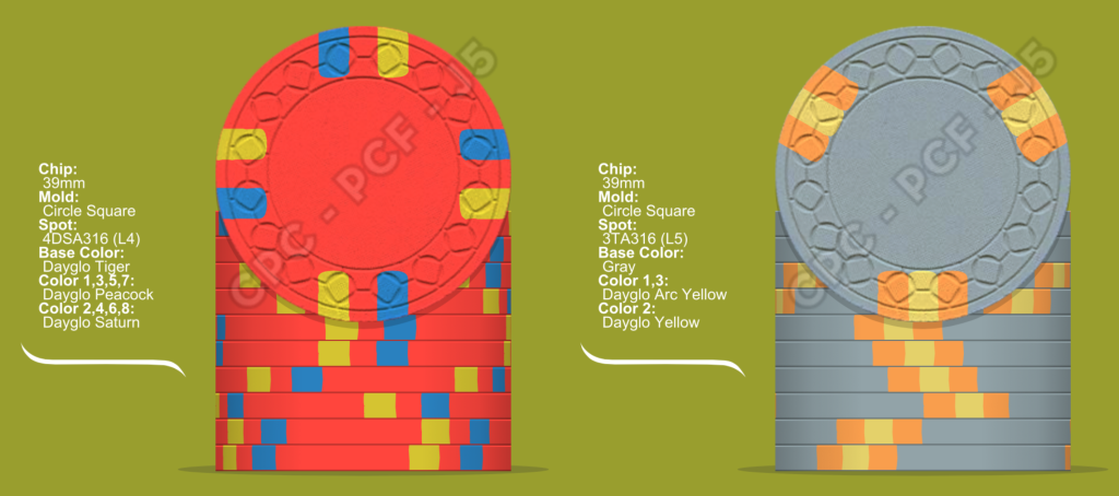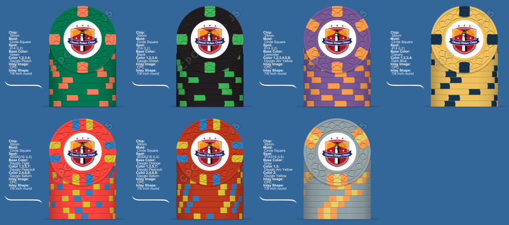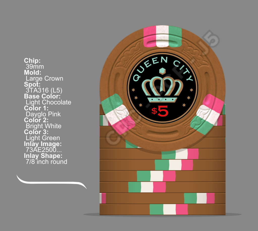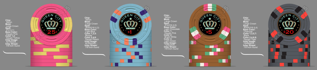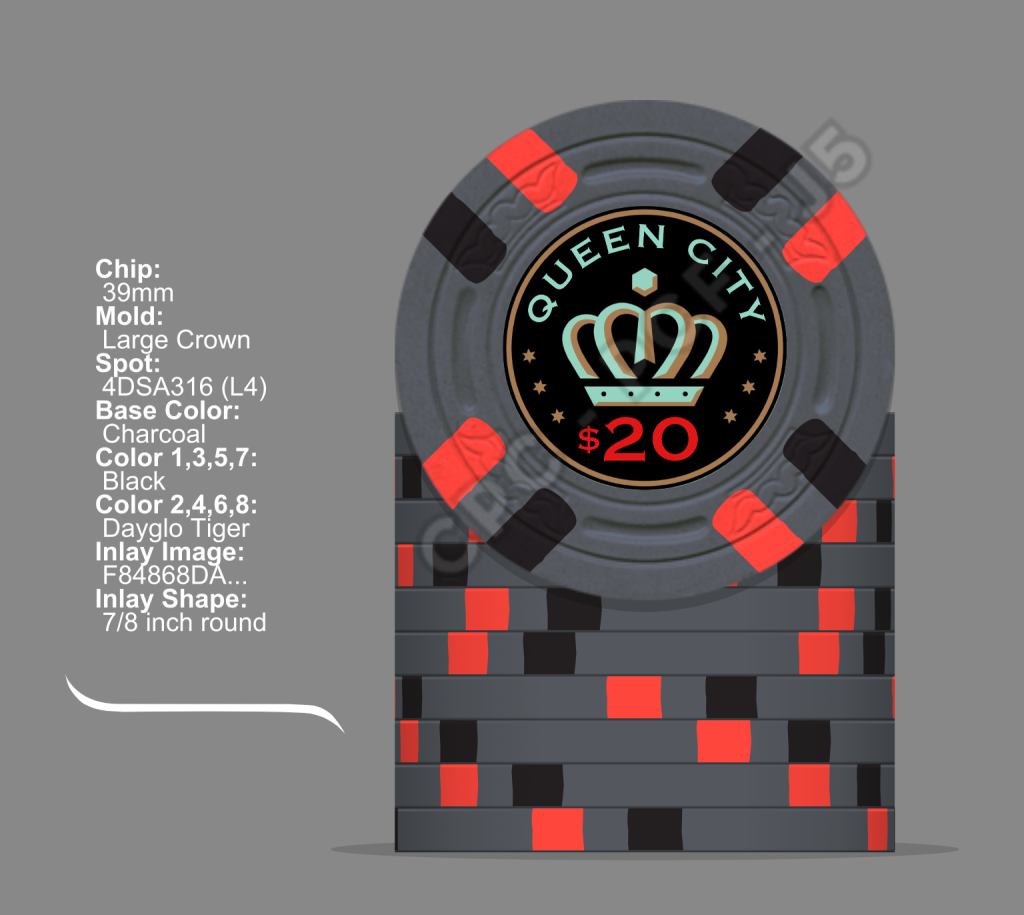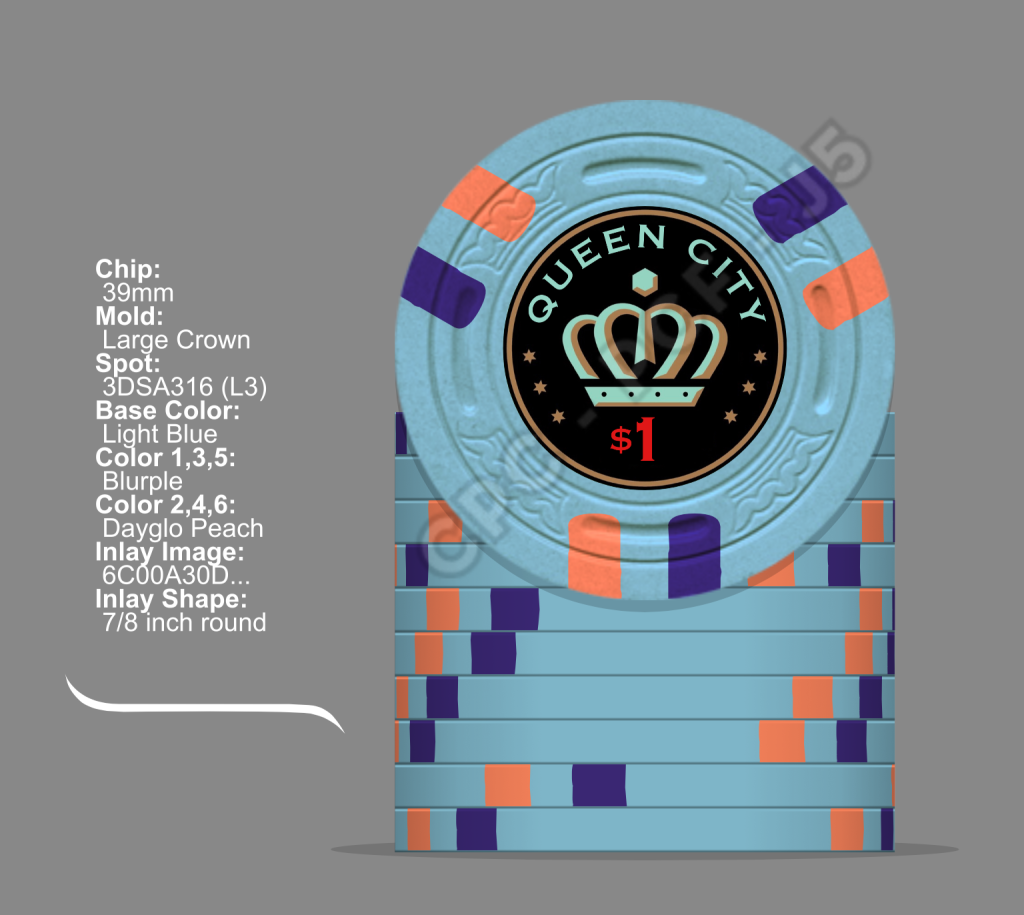 I would put the rest of the lineup in the chip design tool with the inlay to get a better feel. And changing the background to gray is the best IMO. I’m leaning toward DG peach base instead of tiger as well… DG orange could look great as well after looking at the rest of the rounders.