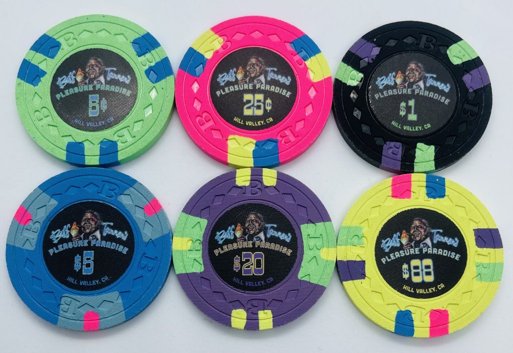 Inlay is better, i.e. readable now. I liked the quarter, so glad you didn't change it other than rotating the label. The $1 edge spots got worse. You removed the one day-glo spot instead of adding more. The $5 got slightly better. Maybe... Still too dark. Pink > butterscotch on the $20. But regular white still a bad choice for an edge spot. Actually, CPC regular white is just a bad choice anywhere on a chip. It's not a good color. You know it has speckles (brass?) in it, right? And in time, they turn green. Use bright white on the $20 and some day-glo colors on the $1 and the $5 and you will thank us.It's tweaked. But personal taste is still personal taste, this is where we're going... We don't need roads