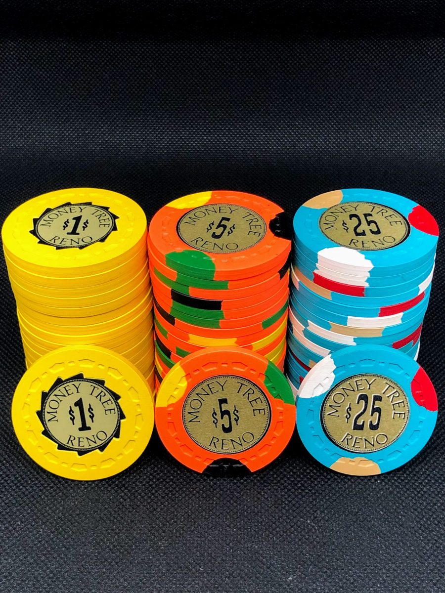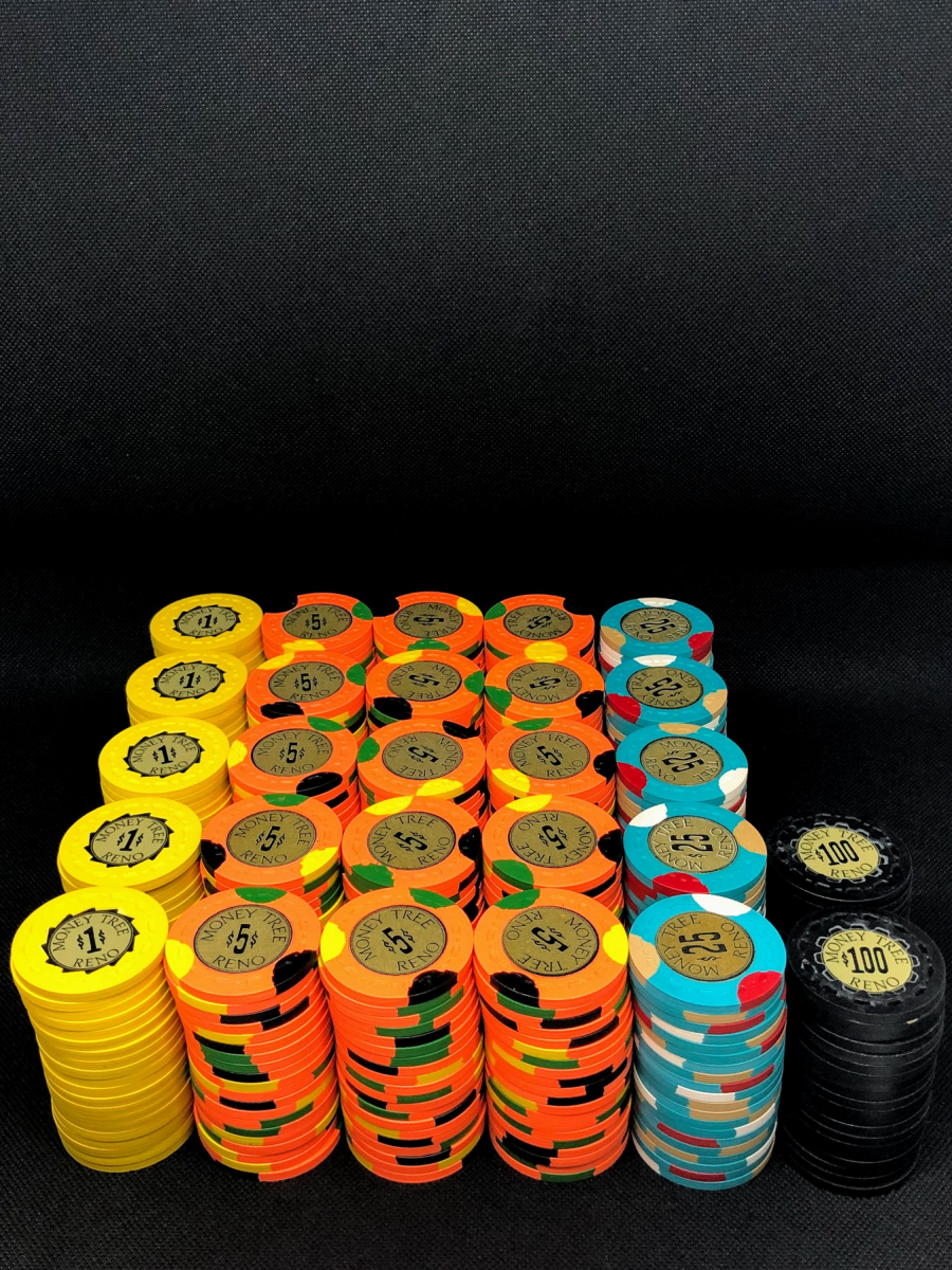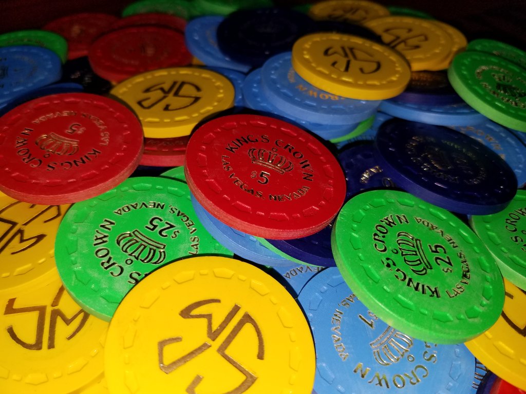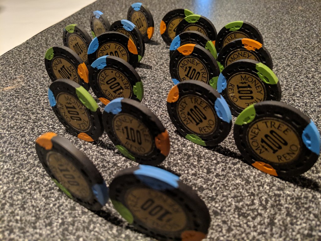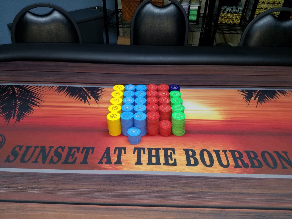 Carousel has eight slots of 25 chips I believe. So when all said and done I'd like 50 quarters in two of those slots. The dollars will fill the next four slots. Then a slot of $5 chips and the final slot will be a mix of 15 $5 chips and ten $20 chips.