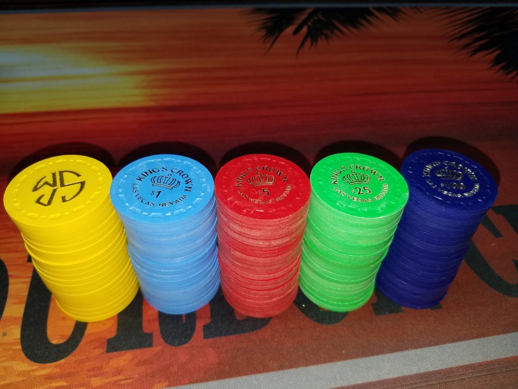 Trying to finish off a mini "family" set of stamped TRKs. Just picked these up and they have my wife's initials on them. Now I need about 40 fives and ten twenties. Gonna set it up to be a four player $25 buy in set that will fit into a chip carousel.