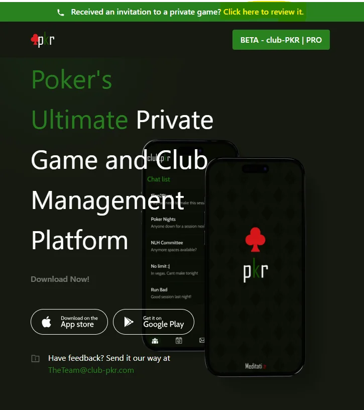 This is where club-PKR | PRO comes in. One of it's key features is the ability to invite Guest players (those who dont have access to the app) to your private games. At present the invite is sent out via email, with the option to notify players of the email via text.