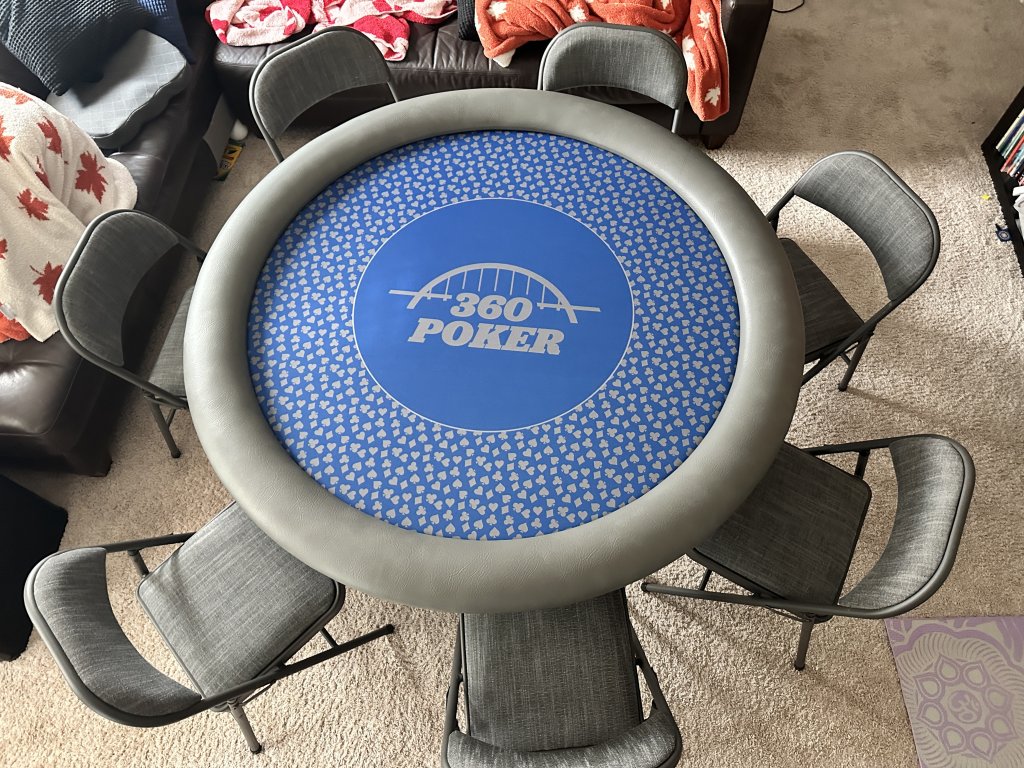 Getting some thoughts on making a round table for circus games. We generally play 7 handed or 8 max when we do that. Would a 54" round table work well for those times? My thought is no built in cup holders but we can use the slide in cup holders as needed. It's a self dealt game so a round would be easier to pass chips and cards around. Would also increase the social aspect of the game. We play in my game room upstairs and the oval table is a bit tight of a fit on the ends so makes walking out to the rest room difficult as the guy on the end usually has to get up for this to happen.