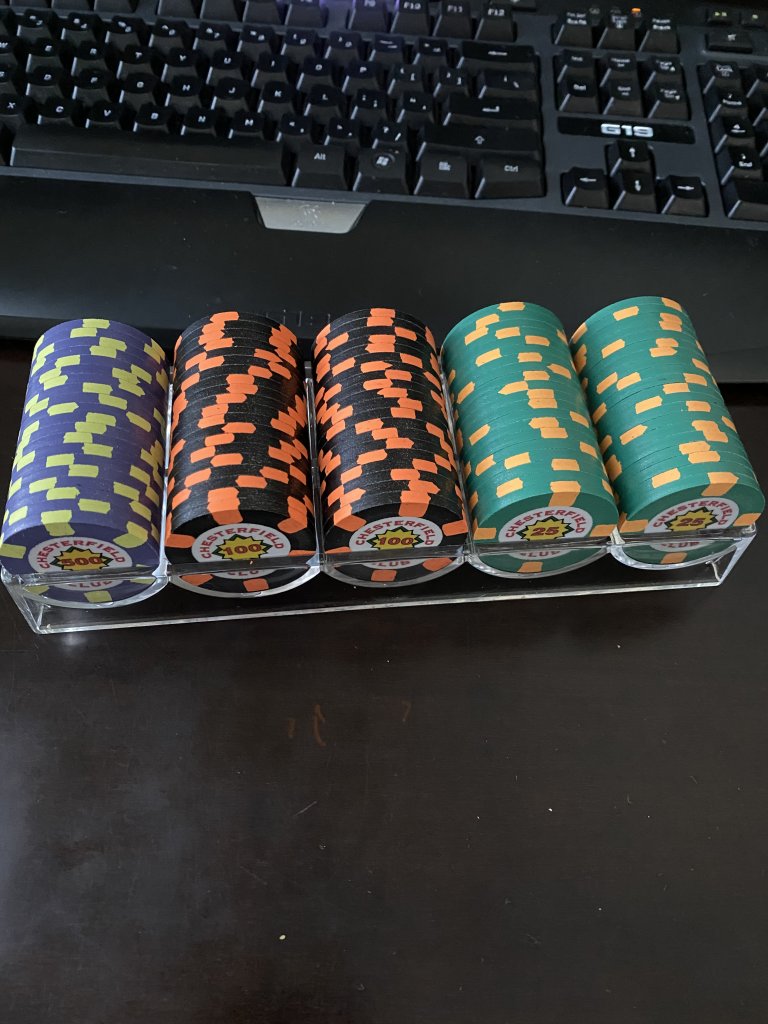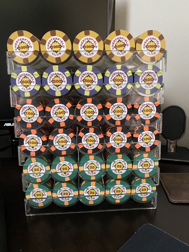 Got my samples in today too. I definitely love the feel of the textured chip faces. So much so that the next CPC customs I decided are definitely going to be on the plain textured mold. Since my quarter pie idea went out the window due to a recent acquisition, I am going to play around with the mock ups and come up with a spot progression that works. Based on what I see with the Chesterfield samples, I kind of like the "thicker" spots seen on those samples. I don't think the edge spot patterns with thinner paint will show well on this mold.