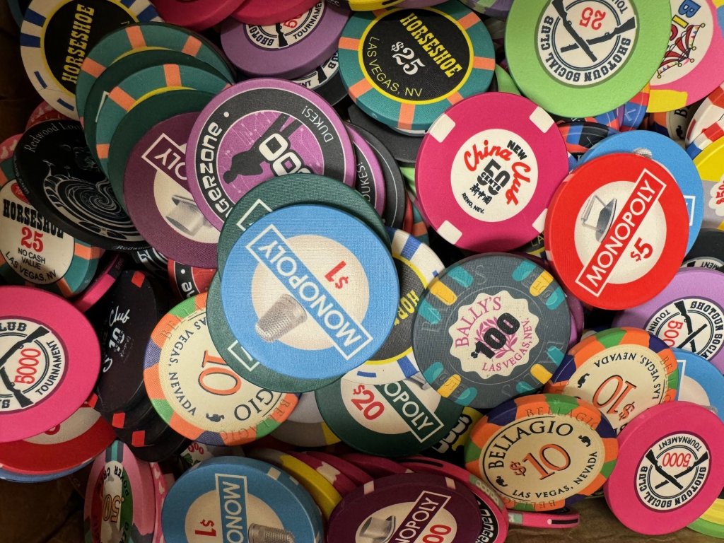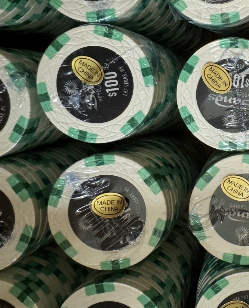 Notice there is a misprint on the label on the $100 chip. The "J" is double printed