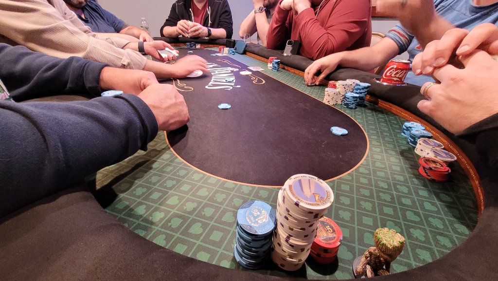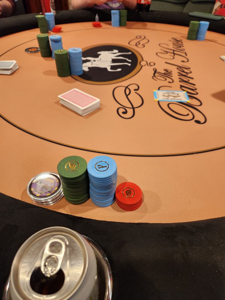 Photo dump from last night. Picked up kings twice and didn't win either time. Started the first hand with about 40 bigs, ace on the flop of course. The ABC tight guy calls my c bet, set it up for a river jam, he ponders a minute and gets a rebuy out from his wallet, calls, and flips over AJ. GG me.