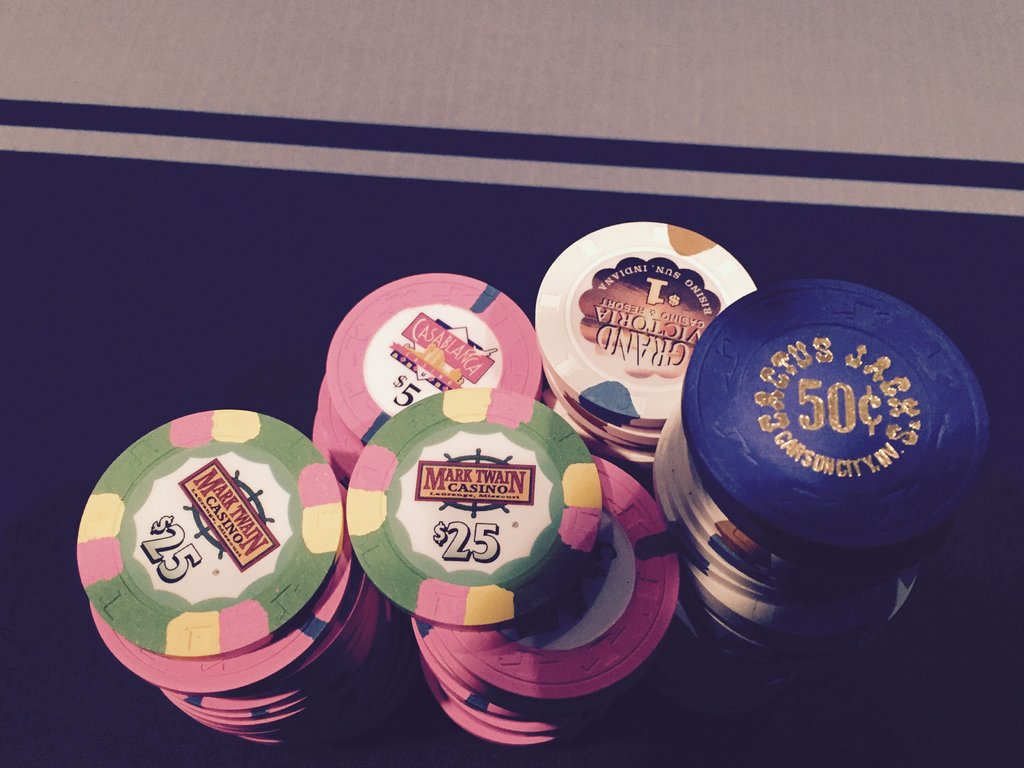 Hmm not sure. I will have to look next time I am there. I think the only difference is between cash game and tourney chips.