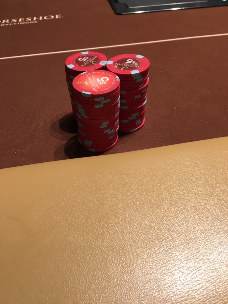 And so he did! Couple players from a broken 5/10 game brought some color up to his table. Out for $730.Buddy of mine just sitting to Horseshoe Baltimore. I'm not there, but he knows I gotta have some chip picsAlready up $100 in the first orbit after this buyin pic. Hoping his next one has some quarters and hundreds for me to check out!