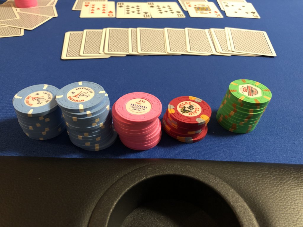 Second game my wife was on a hot streak and won monster pot after monster pot. She pulled off a huge bluff against me and got me to fold my straight. I took 3rd and she took first.