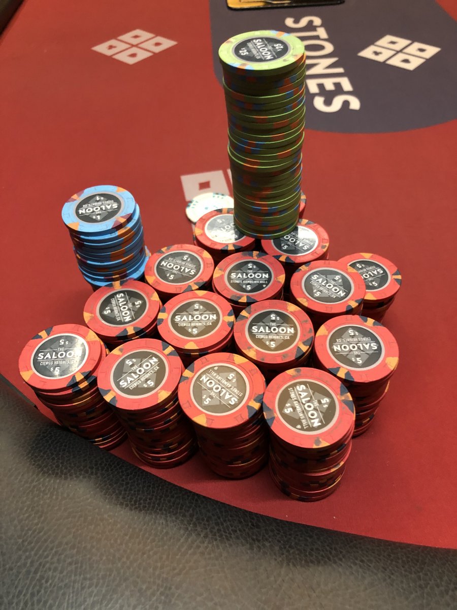 It was an overall great night for me and the wife. First game we squeezed 10 people at the table for our $10 tourney ($10 rebuy) and I think there was 8 rebuys. I took first and my wife 3rd.