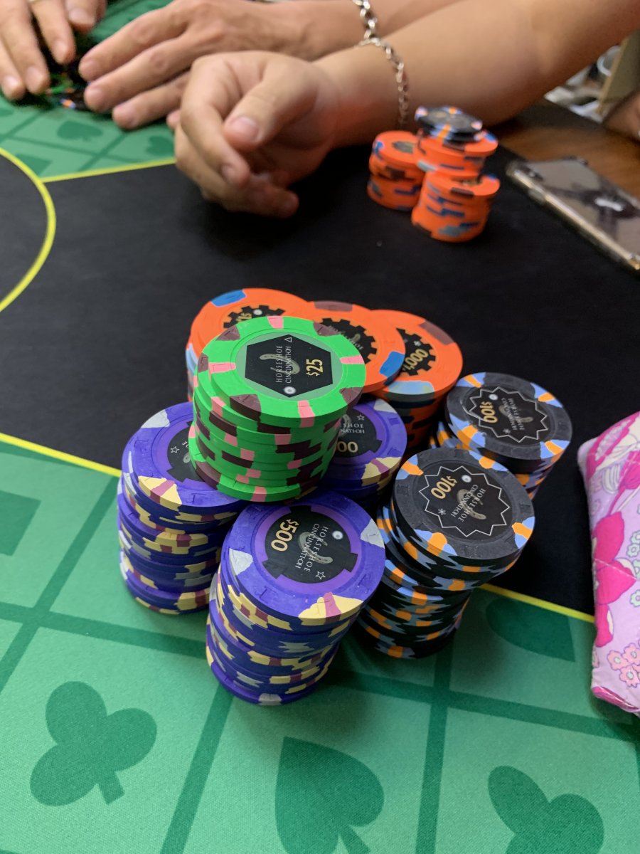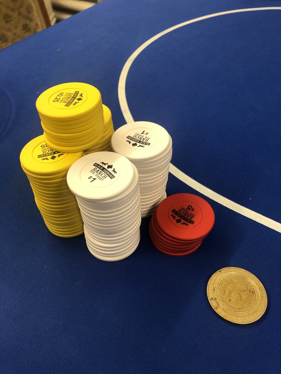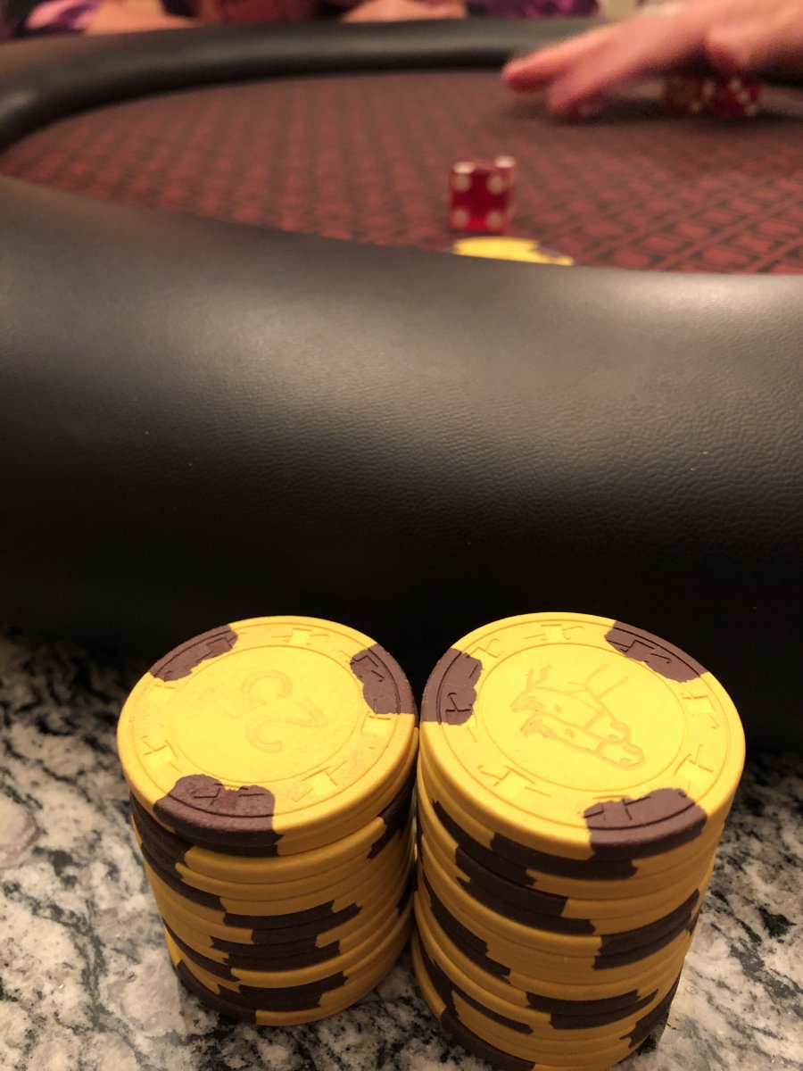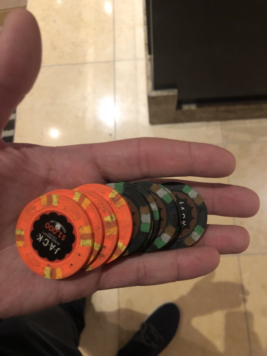 Those orange chips are nice. I reckon you should get 2 racks, take them home and do an inlay replacement on them and make them $5s. Only $100k per rack. Reasonable if you ask me.