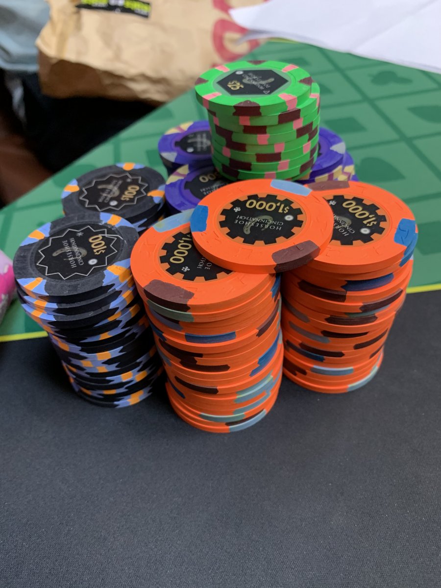 Friday night home cash 50/100 uncapped NLHE... putting these Cincy secondary’s into use for the first time. I LOVE these chips... that indigo!
