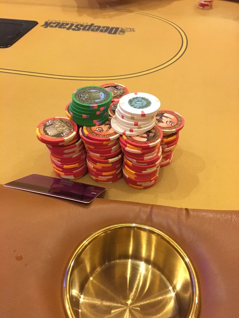 nothing TERRIBLY special. but, first casino session in awhile from a couple weeks ago. new 1/2 table and running like Jesus in the first ocuple hours, after up and down and up a couple hundred in 1/2 and 2/5 earlier that night - in for 3 hundo