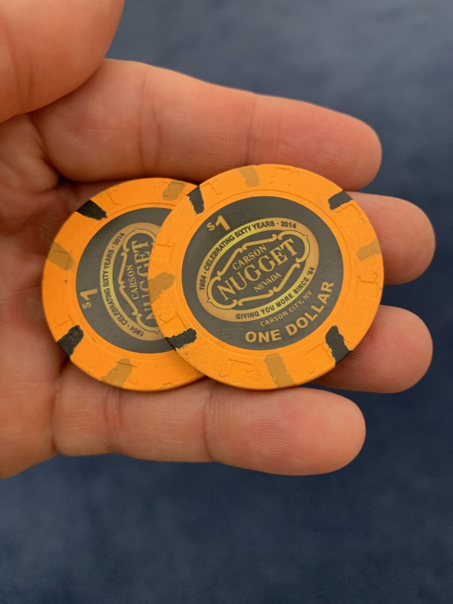 Also, most of the $1 chips are solid yellow (arc yellow) hotstamps, I recall reading a post where the poker room only had those chips, and the table games only had a few of the special commerative spotted $1s.
