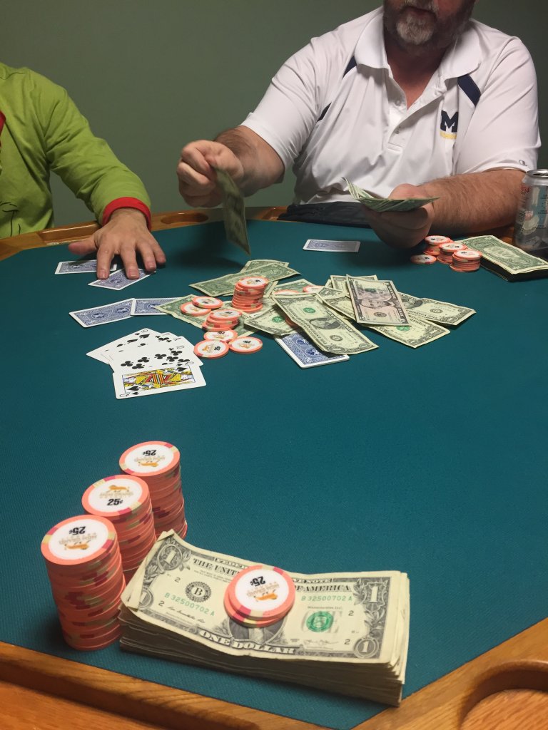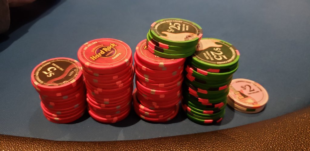 Looks similar to my game with a bunch of old, retired guys except they refuse to have ANY chips. It’s absolutely brutal waiting for everyone to count their money out. We could get in five times as many hands with chips, but they absolutely refuse to use them. I feel your pain.
