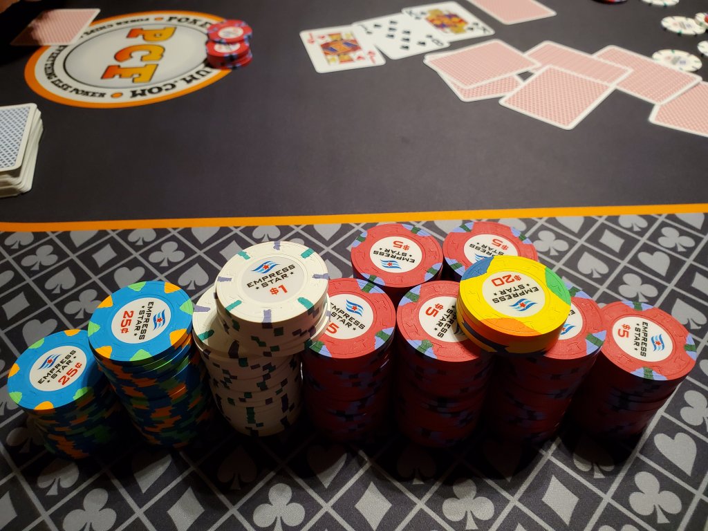 Now a different group of players, real Paulson casino chips and no more wild cards.....poker nights are fun now and not equivalent to taking a sharp stick in the eye like the old days.