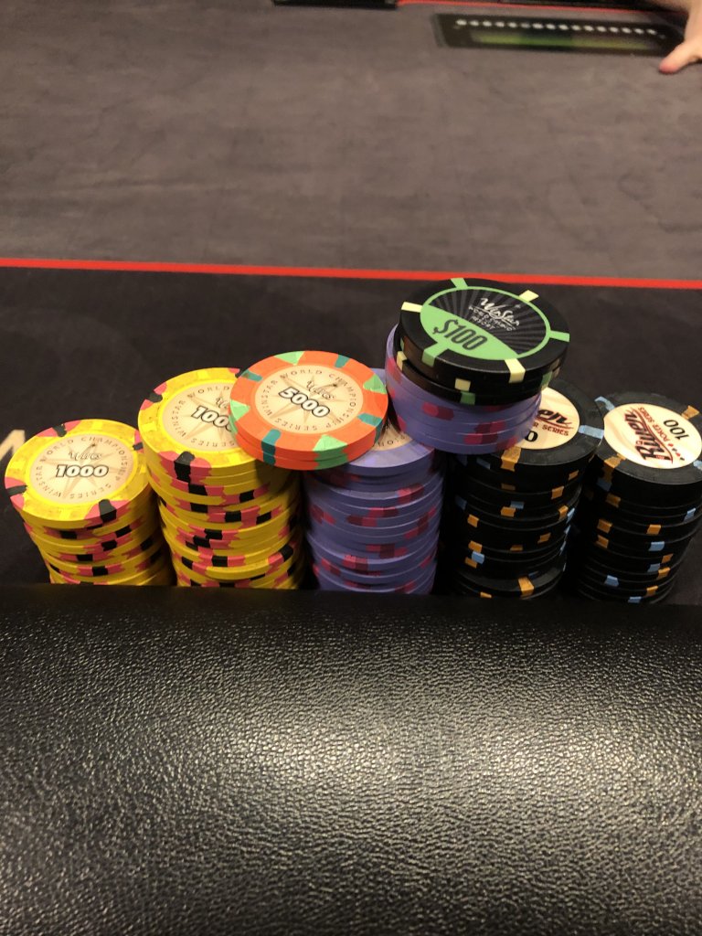 Running hot in the choctaw Saturday deep stack. 7 left with $5700 up top plus a $3700 WPT seat.