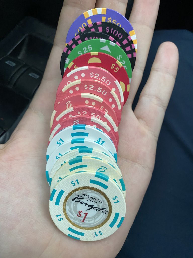Just hit the Monmouth pit stop headed back from AC with the lady. Three early morning sessions at Borgata, hovered around even the first two sessions then broke out the last for a nice payday. I took my profit in chips because a) I know I’ll be back very soon and b) I LOVE CHIPS