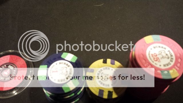 Yeah those Borgota Bud Jones Chips are super nice! Nice work.(y) :thumbsup:Back to the Borg for PLO. $2/5 tonight. Not shown: my losing $5/5 session between this and my last post. I mean, I can post a shot of plain green felt, but that's pretty depressing.