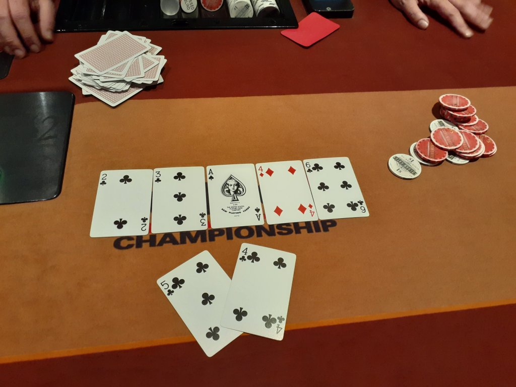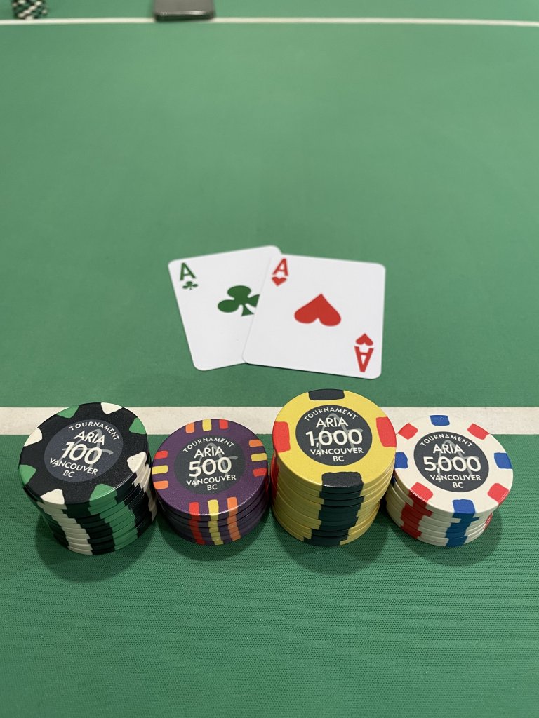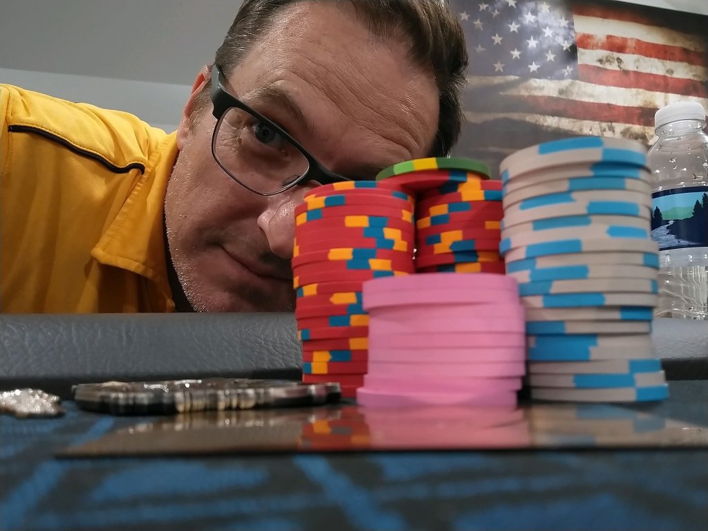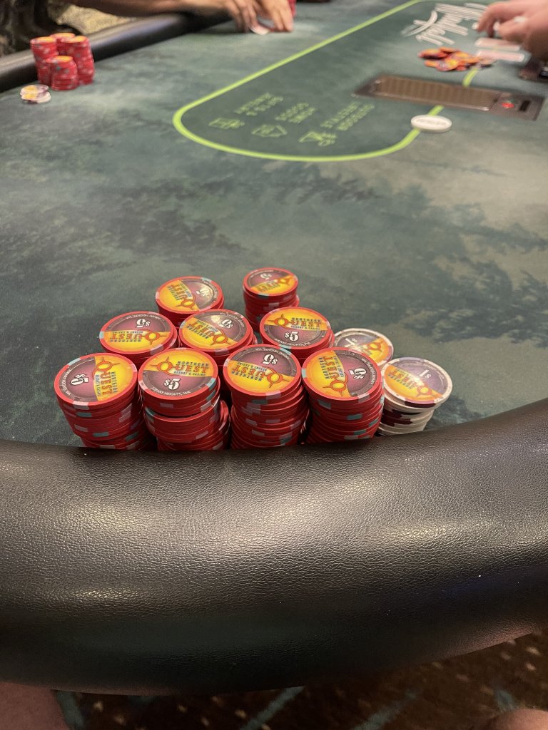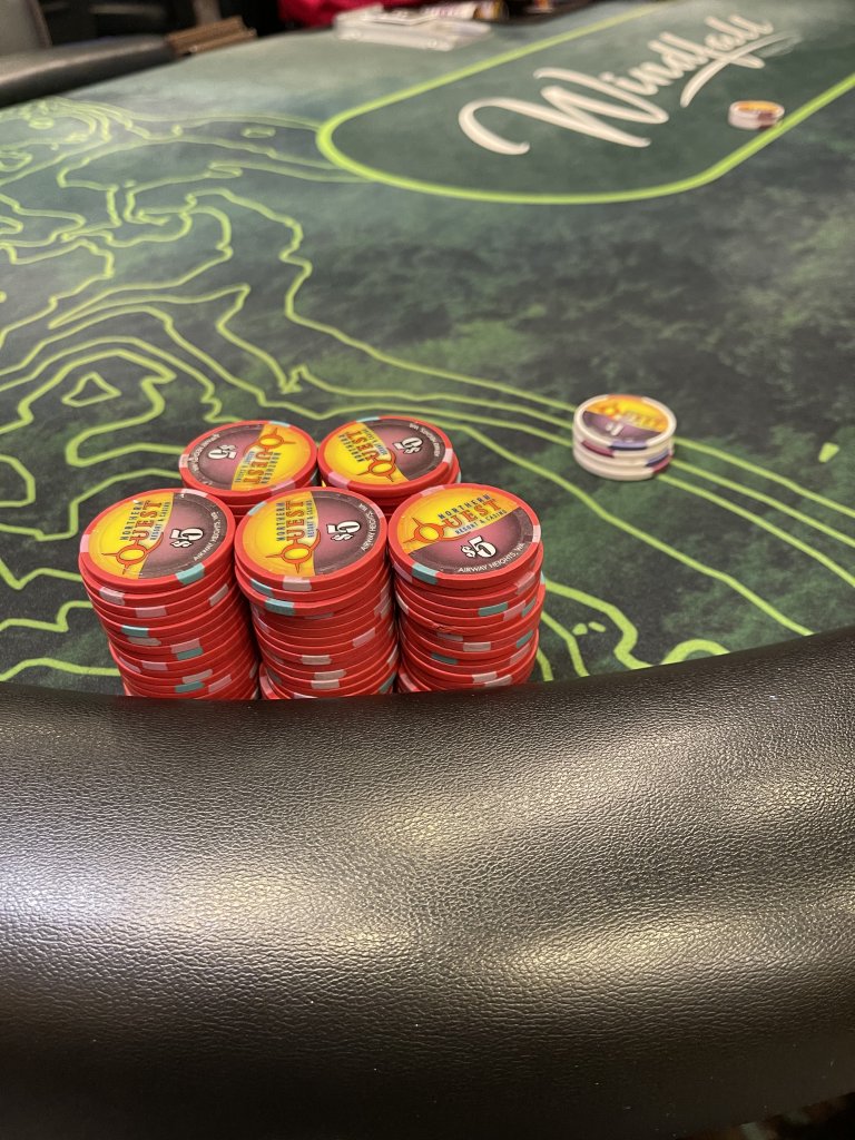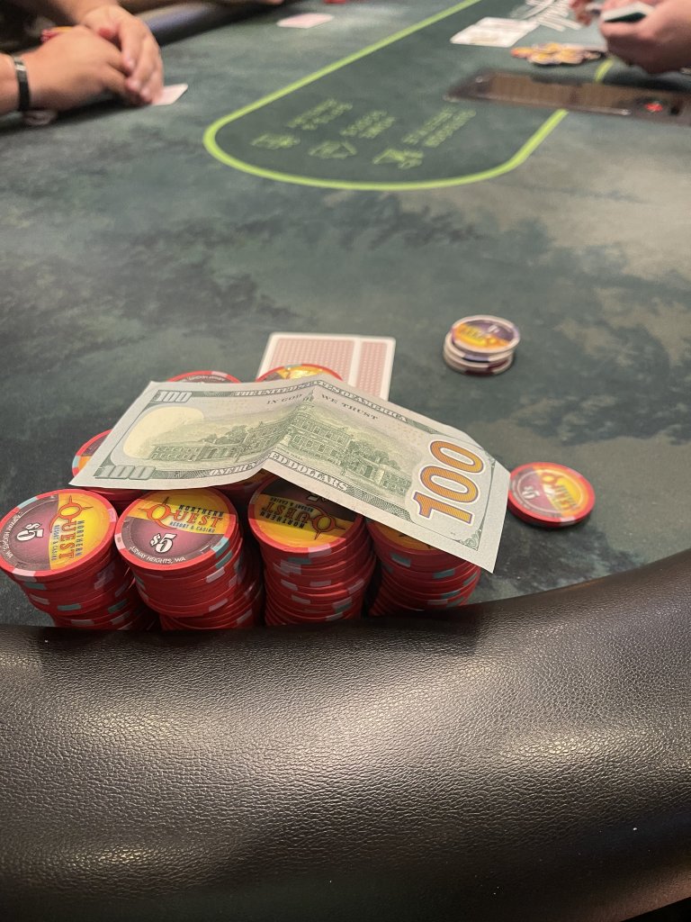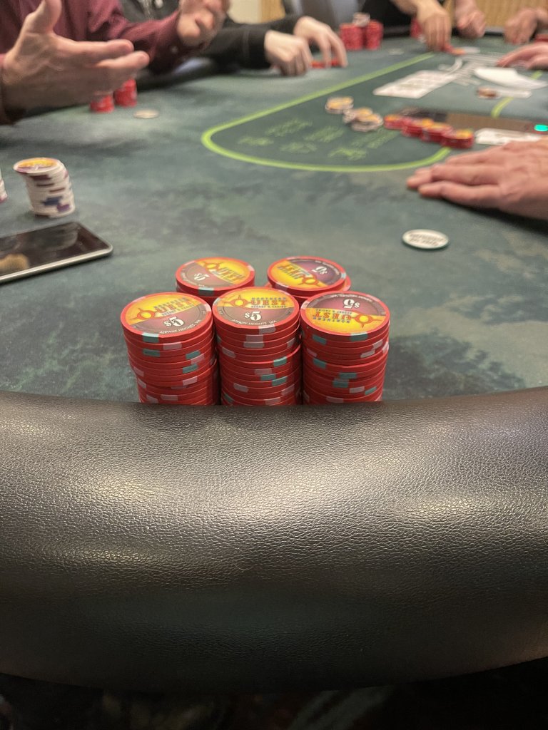 I ended up 200 down for the night after playing for 7 hours. I was getting tired and making some bad calls but it was nice to be playing 10 handed with no masks or dividers.