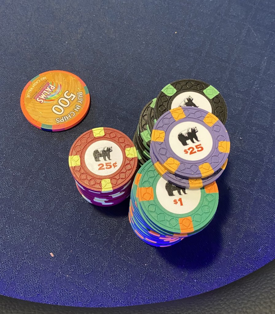$600 Flop AK2hh. He checks, I bet $175, he folds KK face up. Yuck.