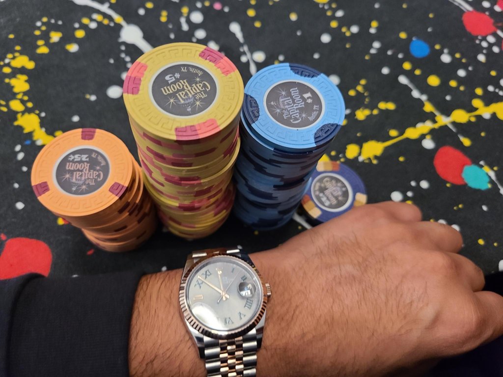 Long time no post . Cash game with BCC Capital Room set from way back when. I know I know, the table cloth is madness. Not my first choice