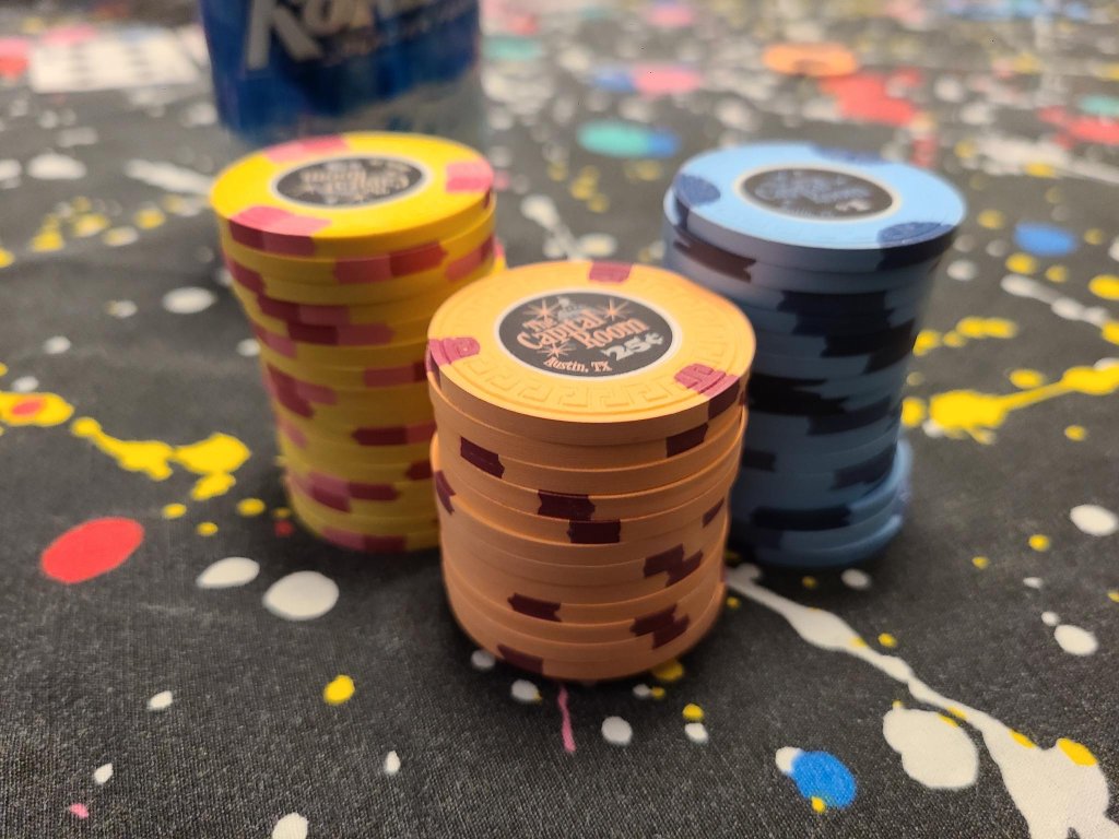 I'm a bit of a n00b at stakes above nickel/dime, but I'm finally starting to get a little more comfortable at the game where I've been playing this year. Really loved playing with these great chips belonging to @MrCatPants My most successful night so far with this group. In for $120, out for $262,