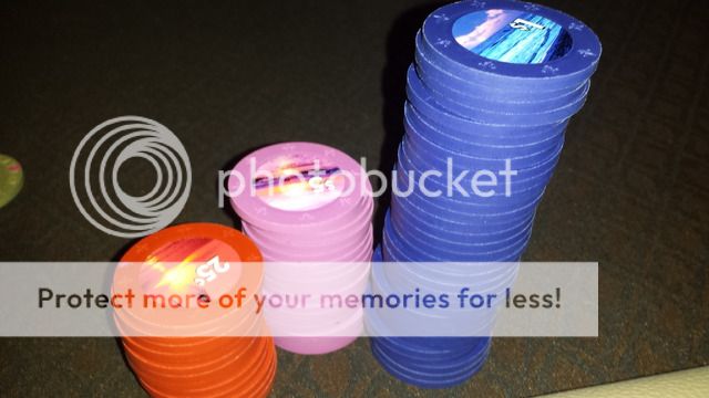 I'll make sure to grab a pic of the stacks next time... I was killing it too until my AA lost on a 555TT board, villain had a T, against the big stack and I'm out.
