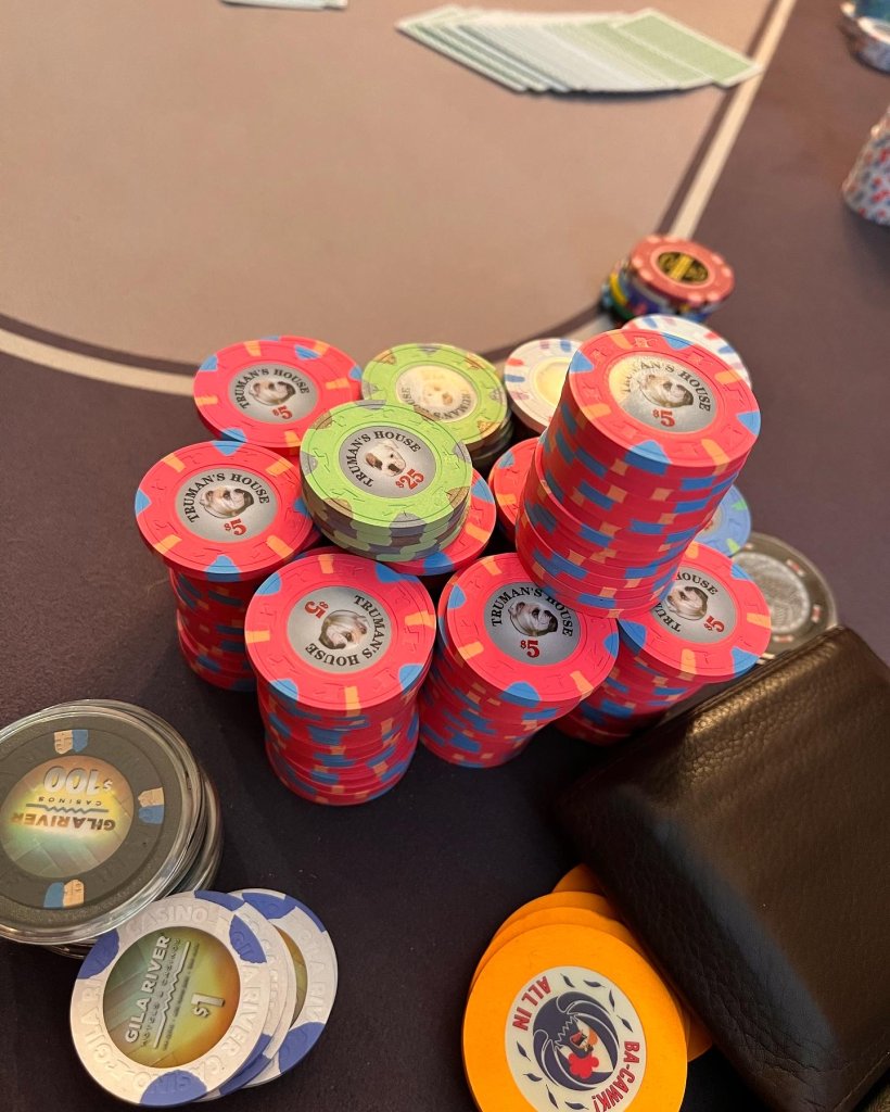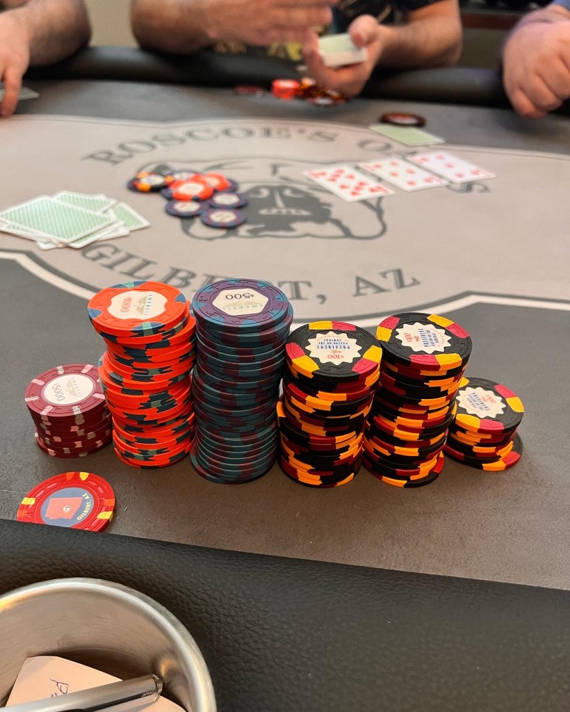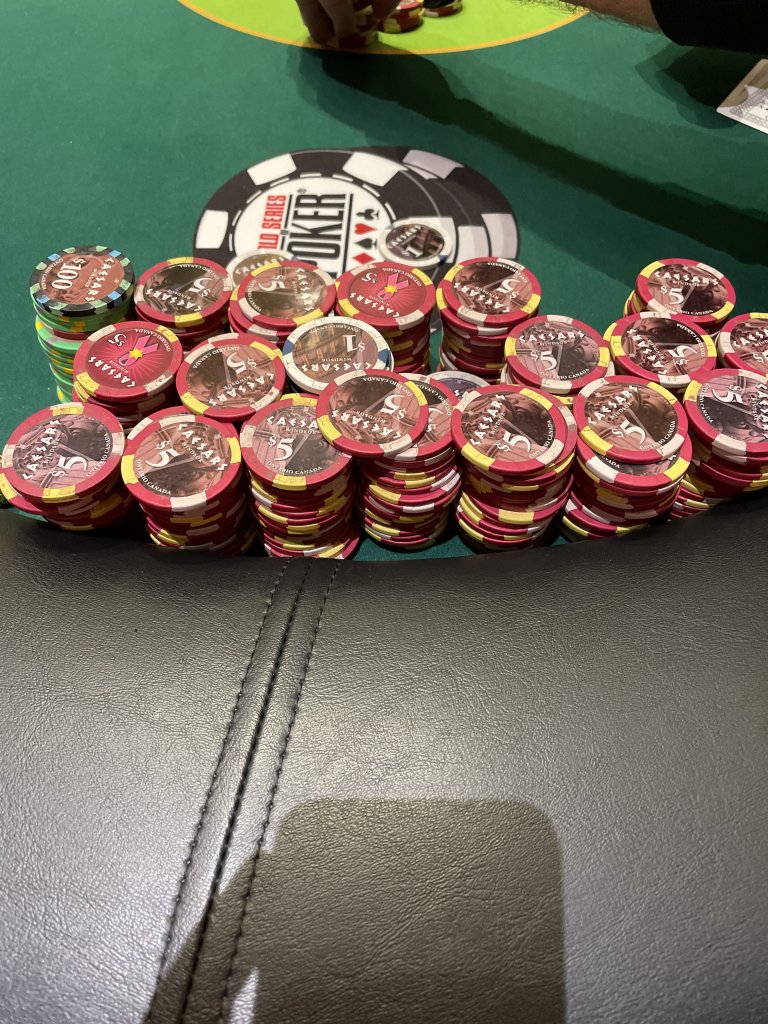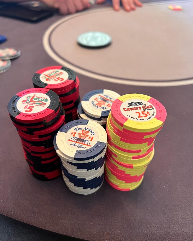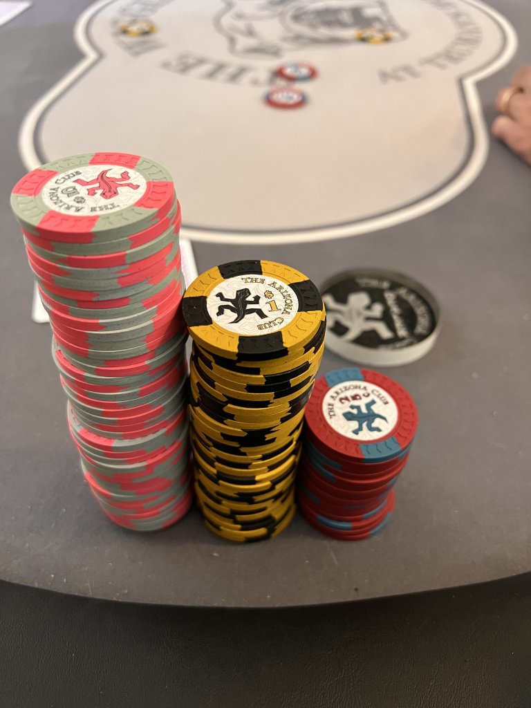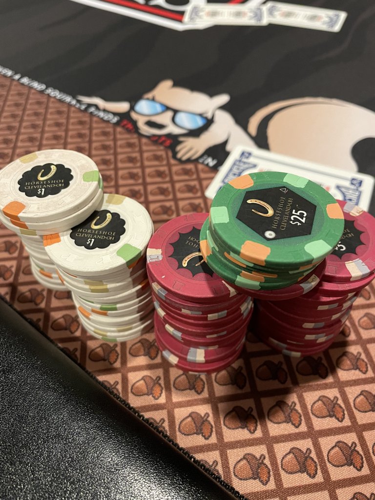 I used to like have this many chips in front of me. Now as soon as I have more than 7 stacks, I color up. Makes betting and playing big pots WAAAAY easier. I do wish I still had photos of my massive 6 and 8 rack stacks from 6/12 and 4/8 back in the day.