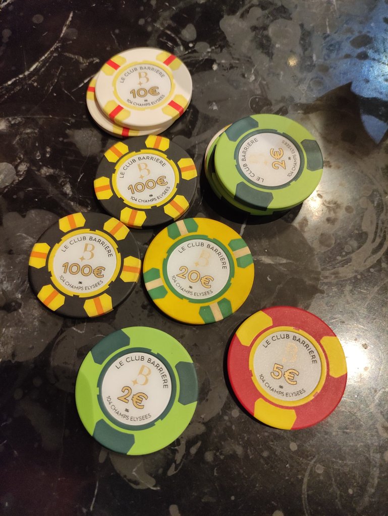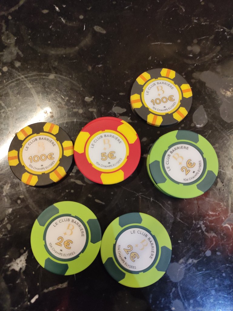 Chips have standard Barrière colour scheme, I like most the 20 euro yellow-green chip.