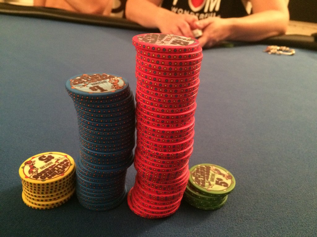 Flopped quads. Couldn't quite get all of the other guys chips but got most of them. Still early...