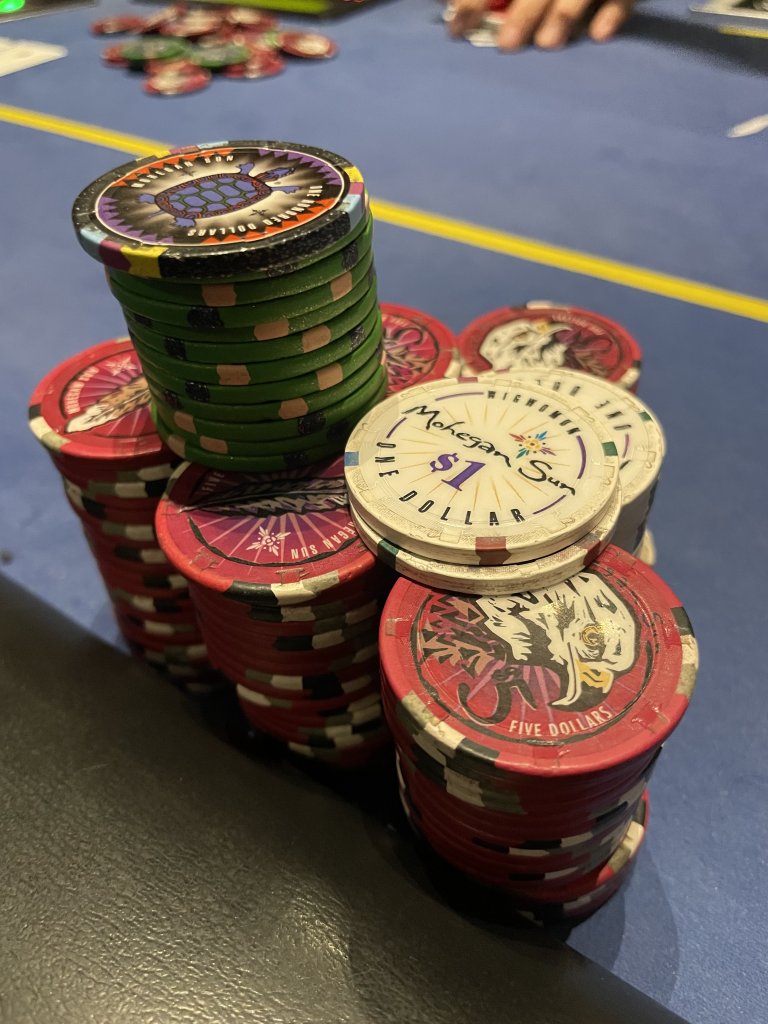 Played/stayed there once when the casino was fairly new. One funny thing about that place is that it wasn’t particularly well constructed (little to no sound proofing). Walking down the hotel hallway you could hear everything that was going on in the rooms. And when I say everything, I mean everything. Lots of unsavory behavior in hotels……..2/5 at Mohegan Sun, where I hadn’t played before: